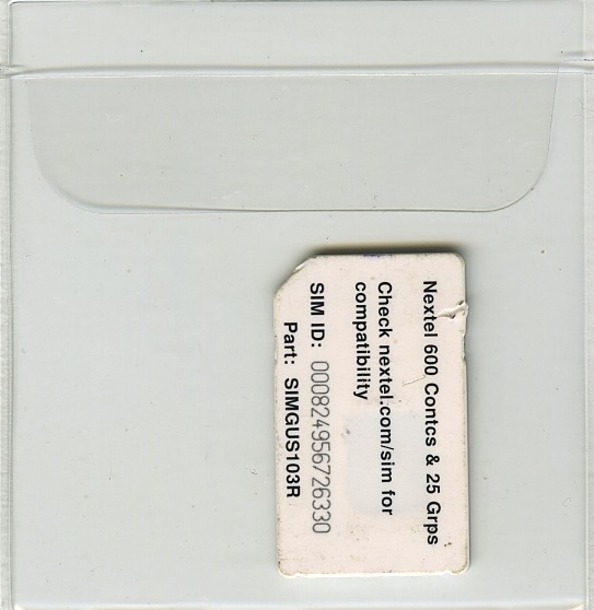 White, nextel 600, ICCID, Part #