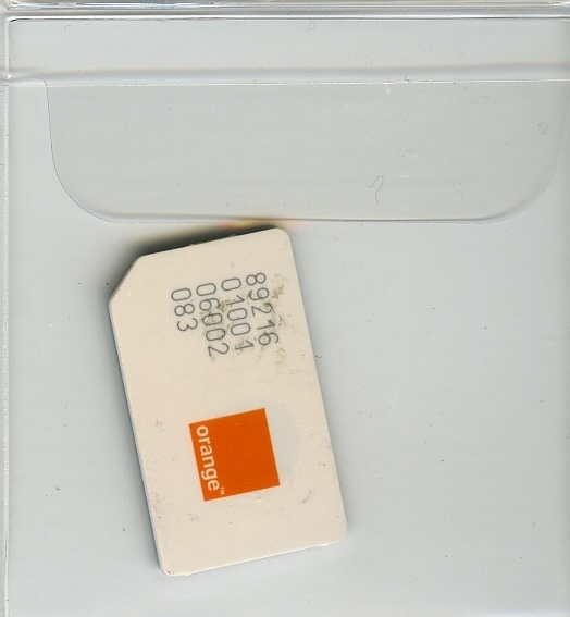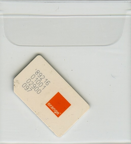 White, orange box logo, ICCID